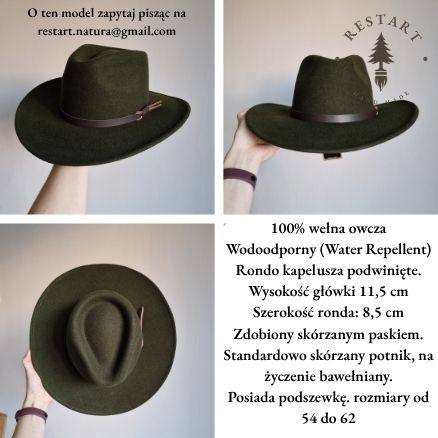 Dostępne również inne modele kapeluszy – dwa przykładowe pokazane są na dwóch ostatnich zdjęciach. Kapelusze są marki Wit-Skoczów. W ich przypadku do ceny regularnej należy doliczyć 160 zł.